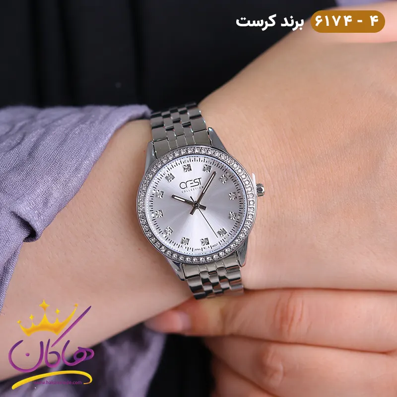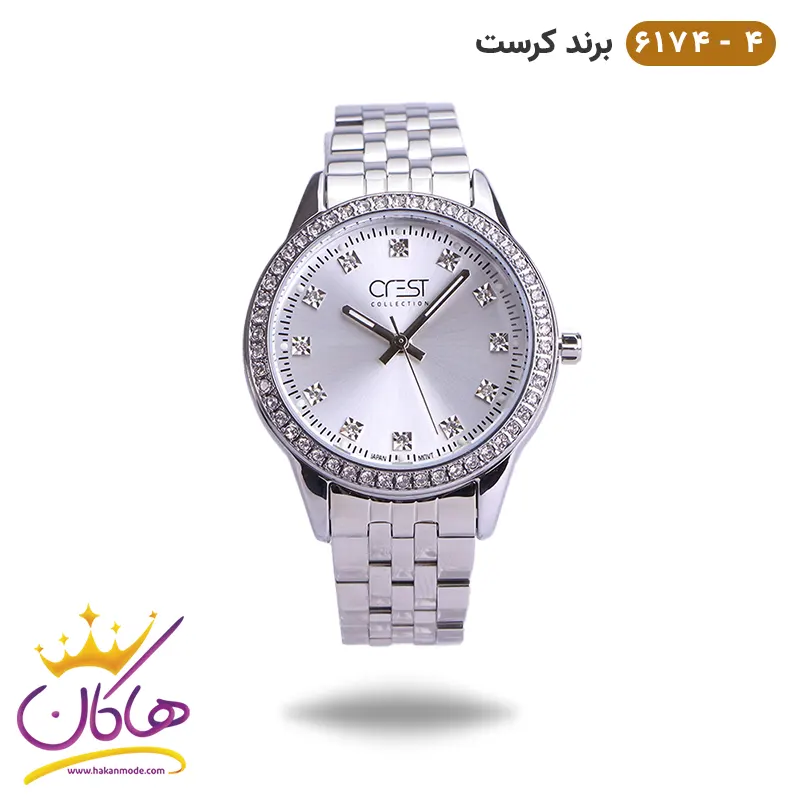 ساعت زنانه کرست نقره ای نگین دار | 6174/4 crest