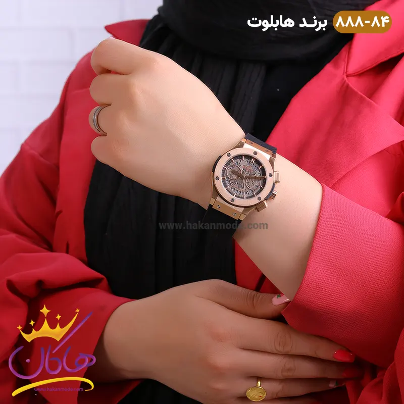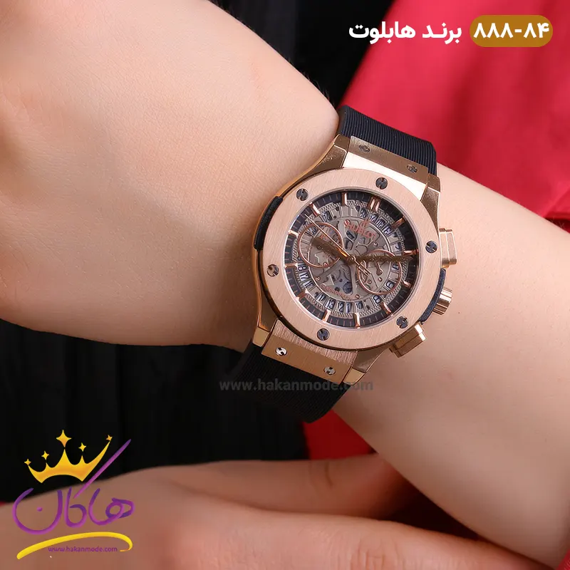 خرید ساعت زنانه کرنوگراف هابلوت رزگلد مشکی صفحه اسکلتون کد 888/84