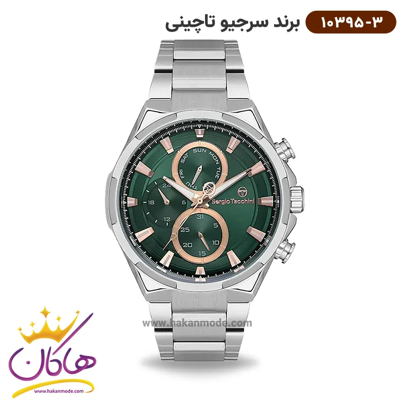 ویژگی ساعت سرجیو تاچینی مردانه استیل نقره ای فول دیت صفحه سبز