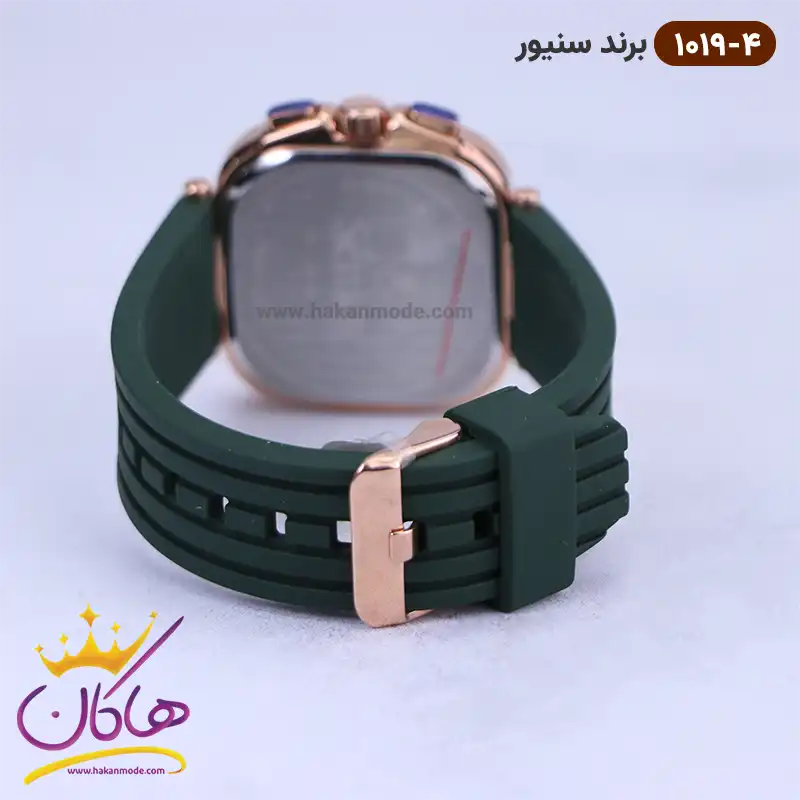 خرید ساعت سنیور مردانه بند رابر سبز قاب مربع رزگلد کرنوگراف 1019