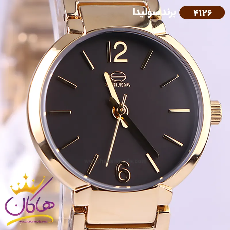 ساعت مچی سولیدا زنانه استیل طلایی صفحه مشکی 4126/3