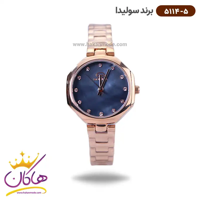 خرید ساعت سولیدا زنانه رزگلد صفحه سورمه ای 5114/5