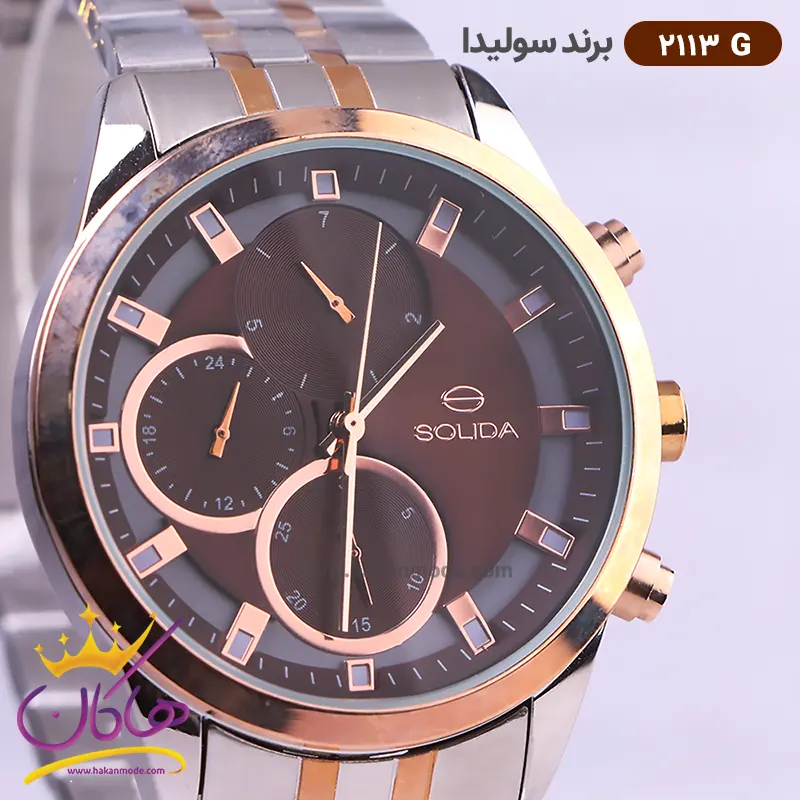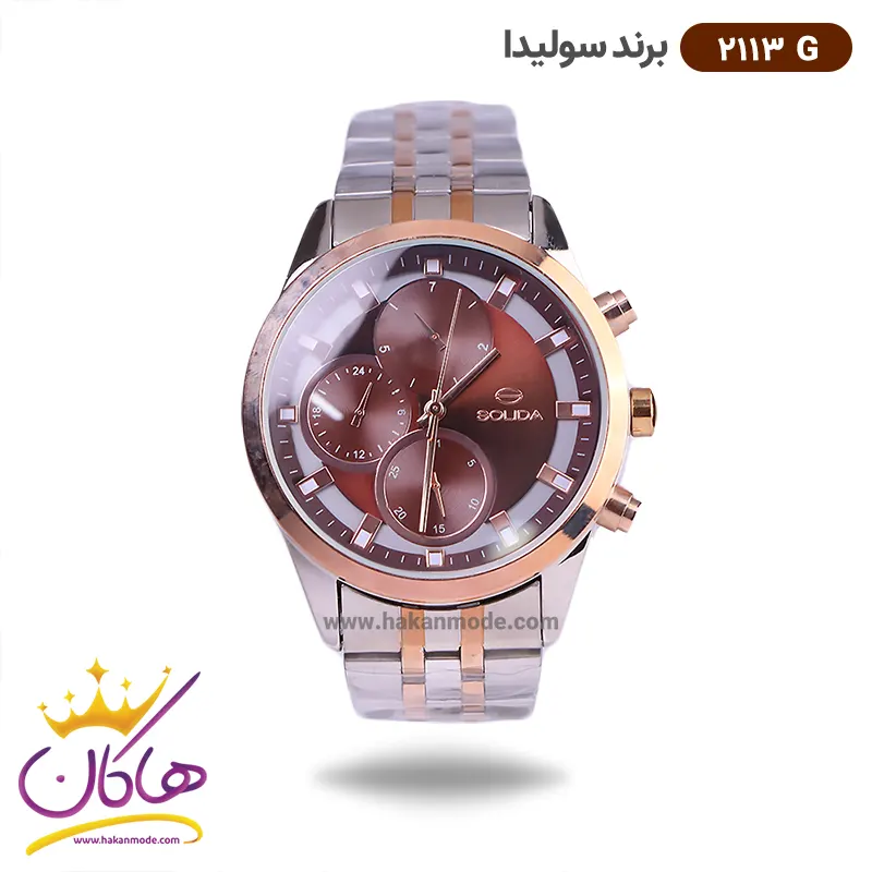 خرید ساعت سولیدا مردانه فلزی نقره ای رزگلد صفحه قهوه ای 2113G