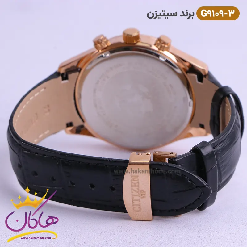 ساعت سیتیزن مردانه بند چرمی مدل G9109 رزگلد ظاهری کلاسیک و جذاب دارد. قاب استیل رزگلد آن، رنگ ثابت و ضدحساسیت است. موتور این ساعت، BC ژاپن و از نوع کوارتز است. ساعت سیتیزن بند چرمی مشکی یکسال گارانتی موتور و تا پنج سال گارانتی تعویض باتری دارد. ضد آب بودن در حد 3 ATM یکی دیگر از ویژگی های این ساعت است. ساعت سیتیزن از نظر قیمت در حد متوسط و از نظر کیفیت از بهترین نمونه های ساعت “های کپی” است.