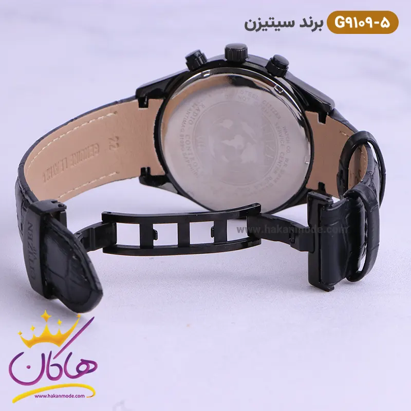 ساعت سیتیزن مردانه بند چرمی مدل G9109 مشکی روی دست