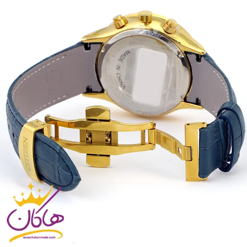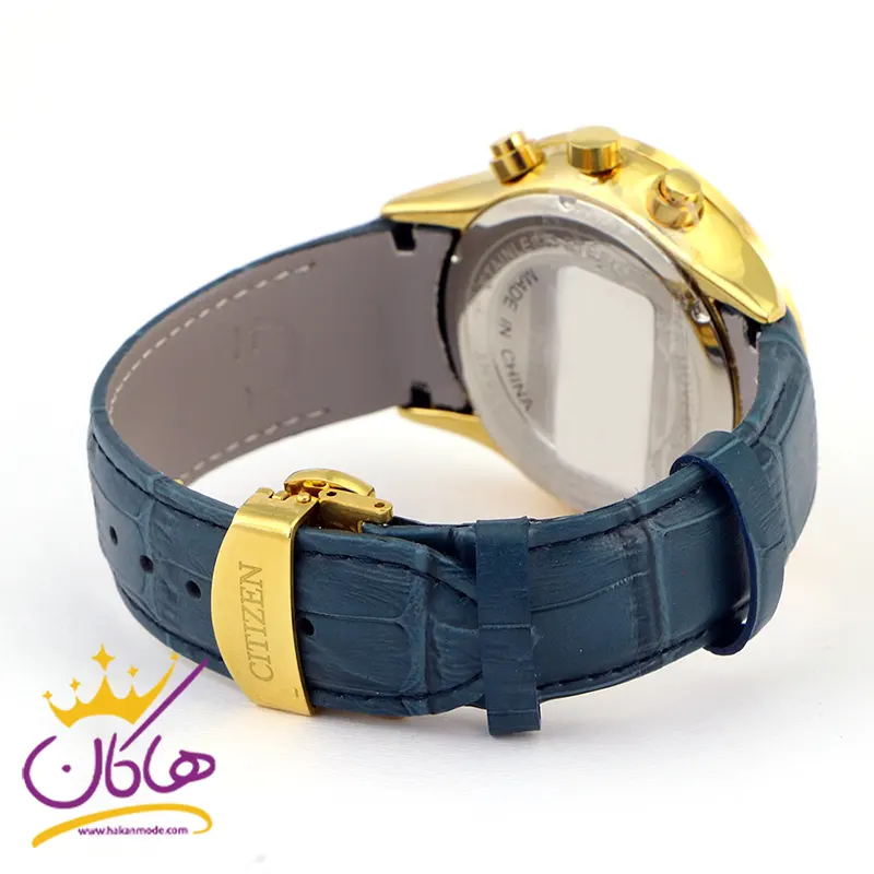 ساعت سیتیزن مردانه طرح چرم آبی قاب طلایی | کد 2068/5 G