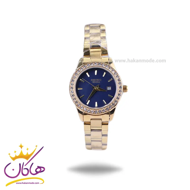 قفل ساعت سیکو زنانه فلزی صفحه سرمه ای قاب نگینی GN 059/20