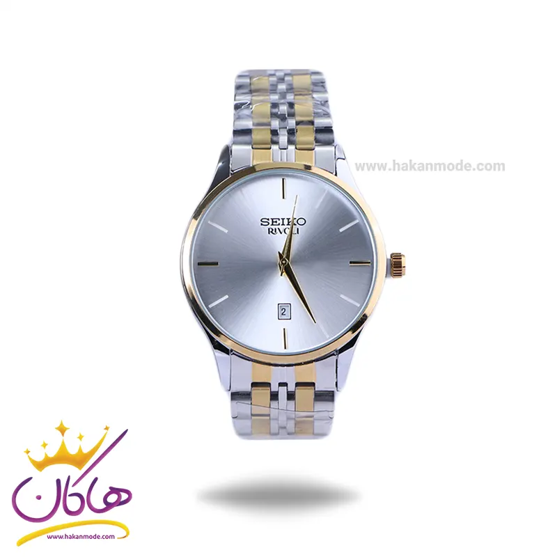 قفل ساعت سیکو مردانه فلزی نقره ای طلایی صفحه سفید OS 9/32
