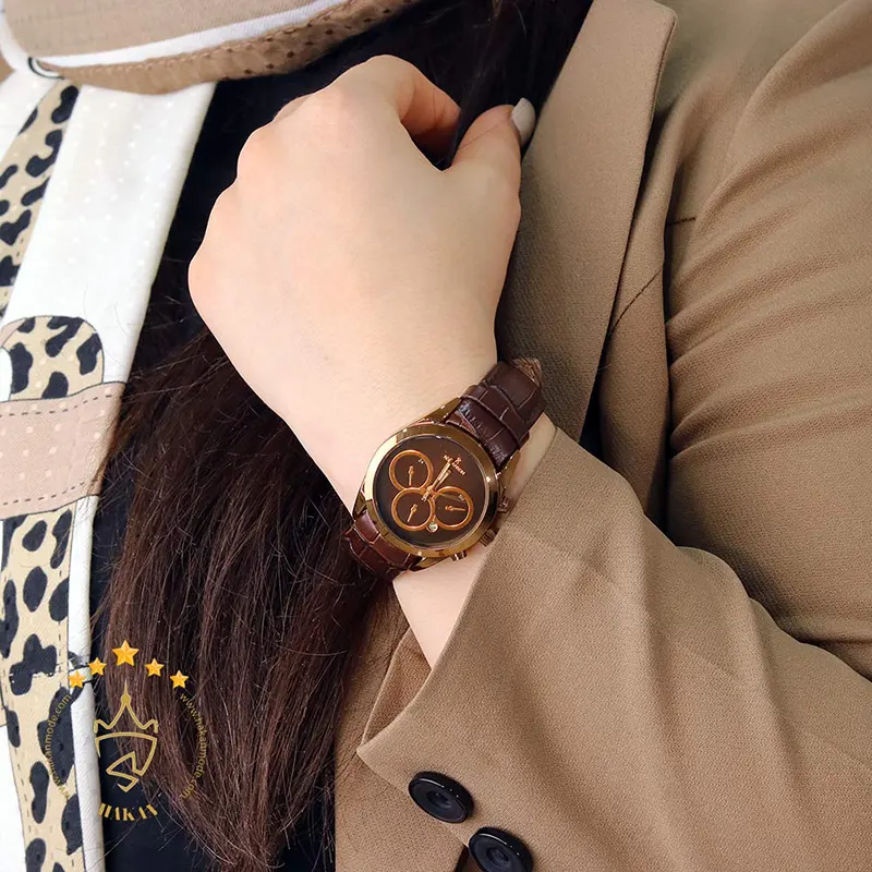 معرفی ساعت طرح رومانسون زنانه بند چرم قهوه ای