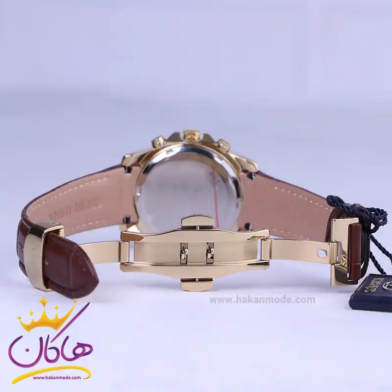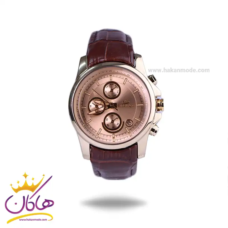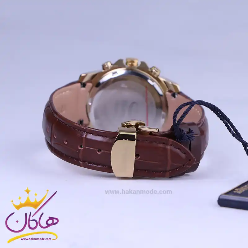 ساعت الگانس زنانه بند چرم قهوه ای ظاهری مدرن و جذاب دارد. قاب این ساعت به رنگ استیل طلایی، رنگ ثابت و ضدحساسیت است. در واقع این ساعت، طرح سه موتوره است و صفحات کوچکی که میبینید، نمایشی هستند. صفحهی این ساعت به رنگ سفید است و تحت تاثیر شیشهی رنگی آن قهوهای نشان داده میشود. اگر به درون صفحه ساعت نگاه کنید، نام برند ELEGANCE کنار ساعت 3 دیده میشود. یک دایره کوچک بین اعداد 4 و 5 قرار دارد که همان تقویم ساعت است. داشتن اندکسهای خطی براق و عقربه های شب رنگ به شما این امکان را میدهد که در شب و محیطهای کم نور هم گذر زمان را ببینید. بند ساعت از نوع چرم مرغوب است که پوسته پوسته و بریده نمیشود، همچنین باعث تعرق و خارش نمیشود. قفل این ساعت از مدل پروانهای دکمهدار است و ساعت به راحتی از دست نمیافتد. این مدل قفل، مثل قفل کمربندی روی بند ترک یا بریدگی ایجاد نمیکند و از محبوبترین قفلها است.