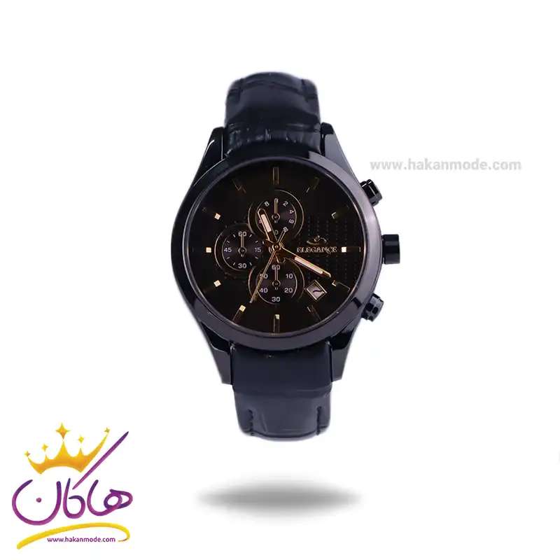ساعت الگانس زنانه بند چرم مشکی ظاهری مدرن و جذاب دارد. قاب این ساعت به رنگ استیل مشکی، رنگ ثابت و ضدحساسیت است. در واقع این ساعت، طرح سه موتوره است و صفحات کوچکی که می‌بینید، نمایشی هستند. اگر به درون صفحه مشکی رنگ ساعت نگاه کنید، نام برند ELEGANCE کنار ساعت 3 دیده می‌شود. یک مربع کوچک بین اعداد 4 و 5 قرار دارد که همان تقویم ساعت است. داشتن اندکس‌های خطی طلایی و عقربه‌ های شب رنگ به شما این امکان را می‌دهد که در شب و محیط‌های کم نور هم گذر زمان را ببینید. بند ساعت از نوع چرم مرغوب است که پوسته پوسته و بریده نمی‌شود، همچنین باعث تعرق و خارش نمی‌شود. قفل این ساعت از مدل پروانه‌ای دکمه‌دار است و ساعت به راحتی از دست نمی‌افتد. این مدل قفل، مثل قفل کمربندی روی بند ترک یا بریدگی ایجاد نمی‌کند و از محبوبترین قفل‌ها است.