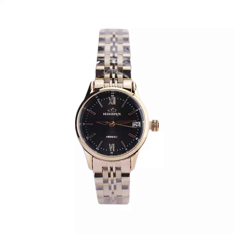 ویژگی ساعت مچی الگانس زنانه فلزی طلایی صفحه مشکی