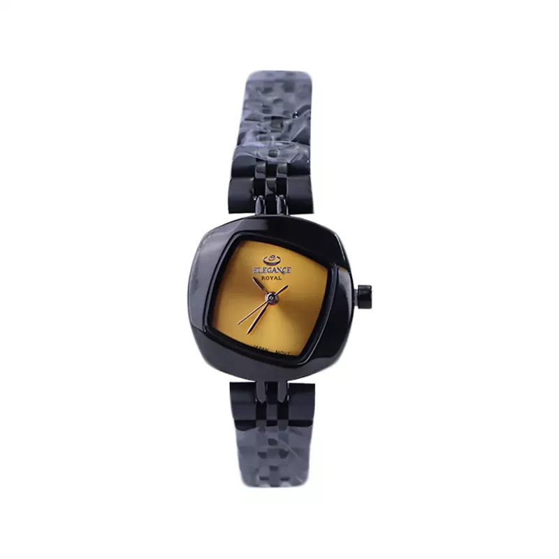 ساعت عقربه ای الگانس زنانه فلزی مشکی صفحه طلایی ER 2200/12