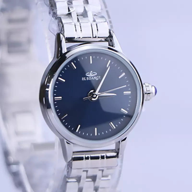 ویژگی ساعت مچی الگانس زنانه فلزی نقره‌ای صفحه سرمه‌ای