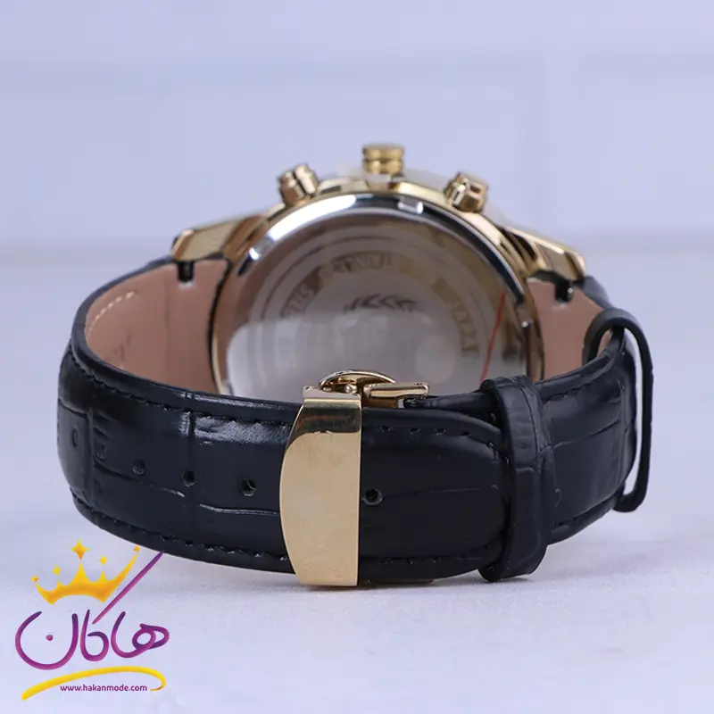 ساعت الگانس مردانه بند چرم مشکی ظاهری مدرن و جذاب دارد. قاب این ساعت به رنگ استیل طلایی، رنگ ثابت و ضدحساسیت است. در واقع این ساعت، طرح سه موتوره است و صفحات کوچکی که میبینید، نمایشی هستند. داشتن اندکسهای خطی شبنما و عقربههای شب رنگ به شما این امکان را میدهد که در شب و محیطهای کم نور هم گذر زمان را ببینید. اگر به درون صفحه طوسی رنگ و طرحدار ساعت نگاه کنید، نام برند ELEGANCE زیر ساعت 12 قرار دارد. یک مربع کوچک بین اعداد 4 و 5 قرار دارد که تقویم ساعت است. بند ساعت از نوع چرم مرغوب است که پوسته پوسته و بریده نمیشود، همچنین باعث تعرق و خارش نمیشود. قفل این ساعت از مدل پروانهای دکمهدار است و ساعت به راحتی از دست نمیافتد. این مدل قفل، مثل قفل کمربندی روی بند ترک یا بریدگی ایجاد نمیکند و از محبوبترین قفلها است.