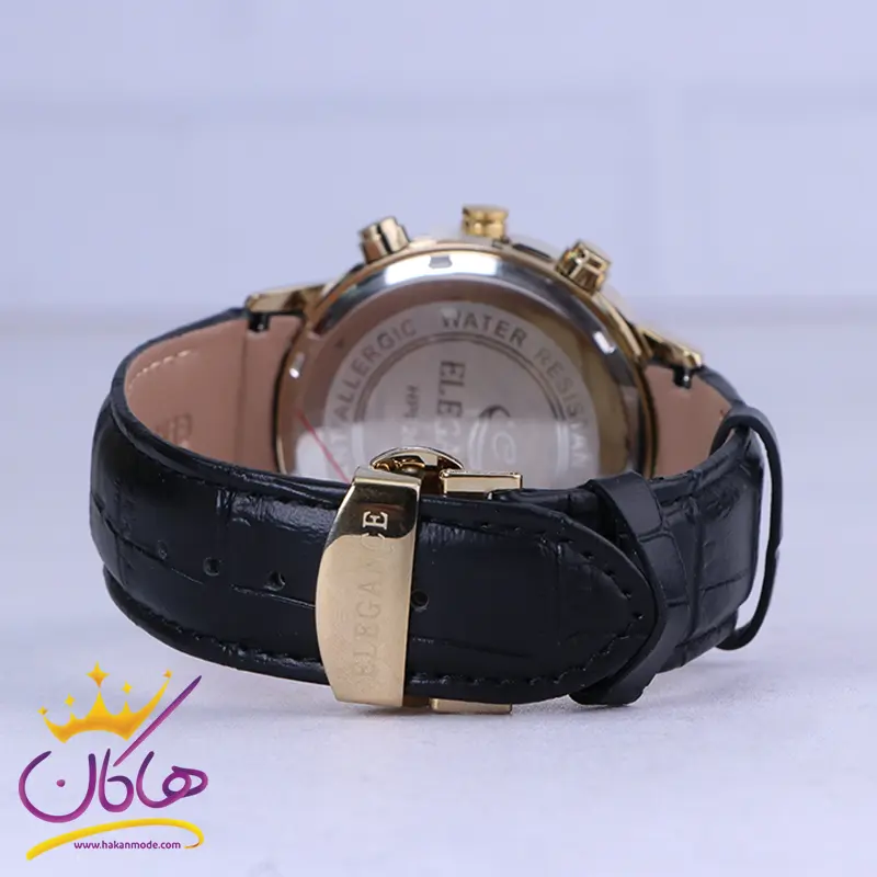 بهترین قیمت ساعت الگانس مردانه بند چرم مشکی