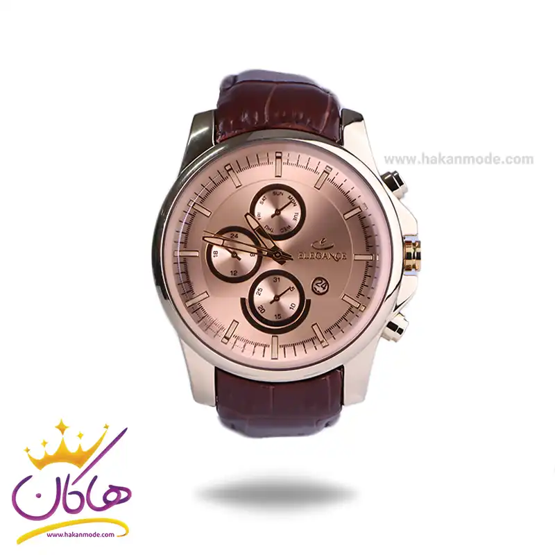 بهترین قیمت ساعت الگانس مردانه بند چرم قهوه ای