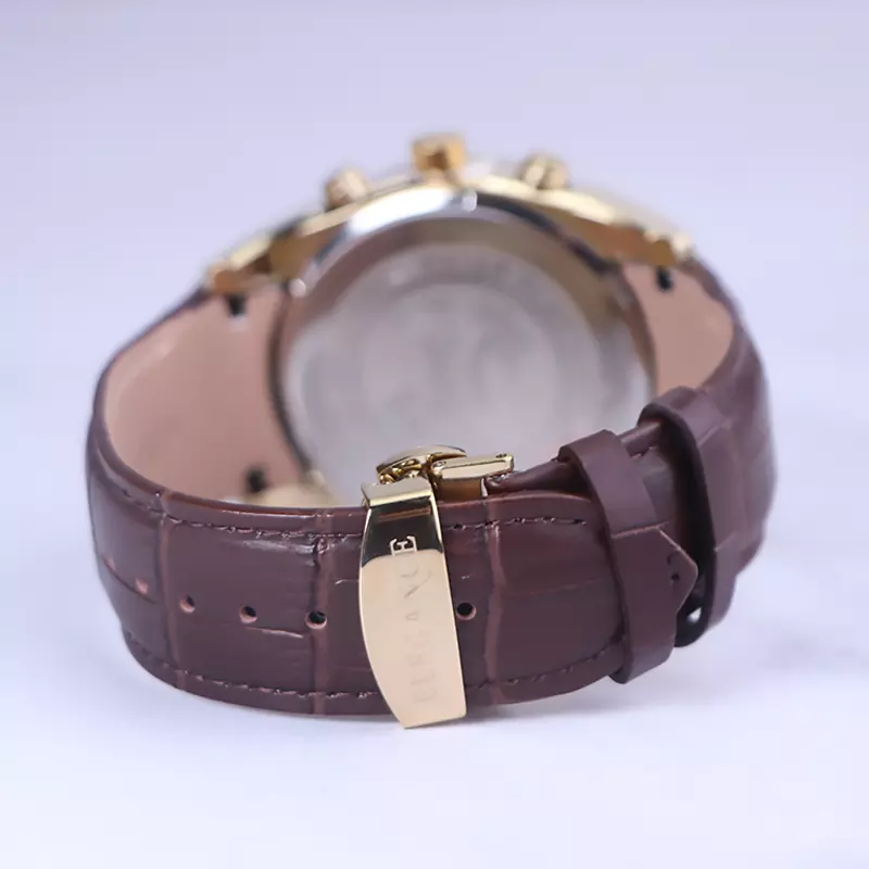 خرید ساعت عقربه ای الگانس مردانه بند چرم قهوه ای قاب طلایی G 1202/1