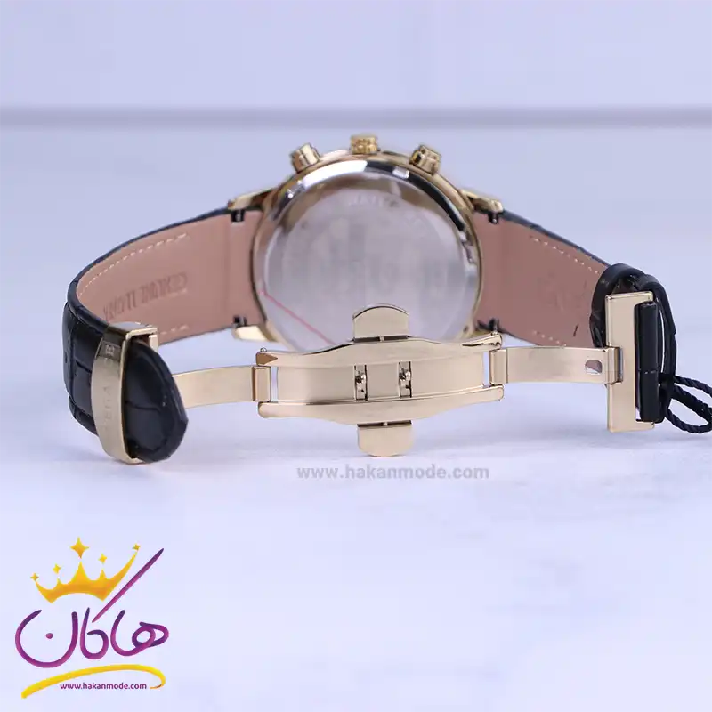 خرید ساعت عقربه ای الگانس مردانه بند چرم مشکی قاب طلایی G2095/4