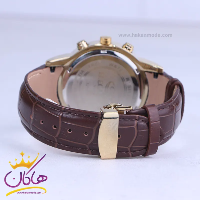 ساعت عقربه ای الگانس مردانه چرم قهوه ای صفحه طلایی G 1255/3