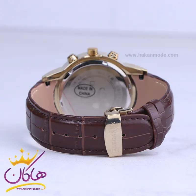 ساعت عقربه ای الگانس مردانه چرم قهوه ای صفحه طلایی G 1255/3