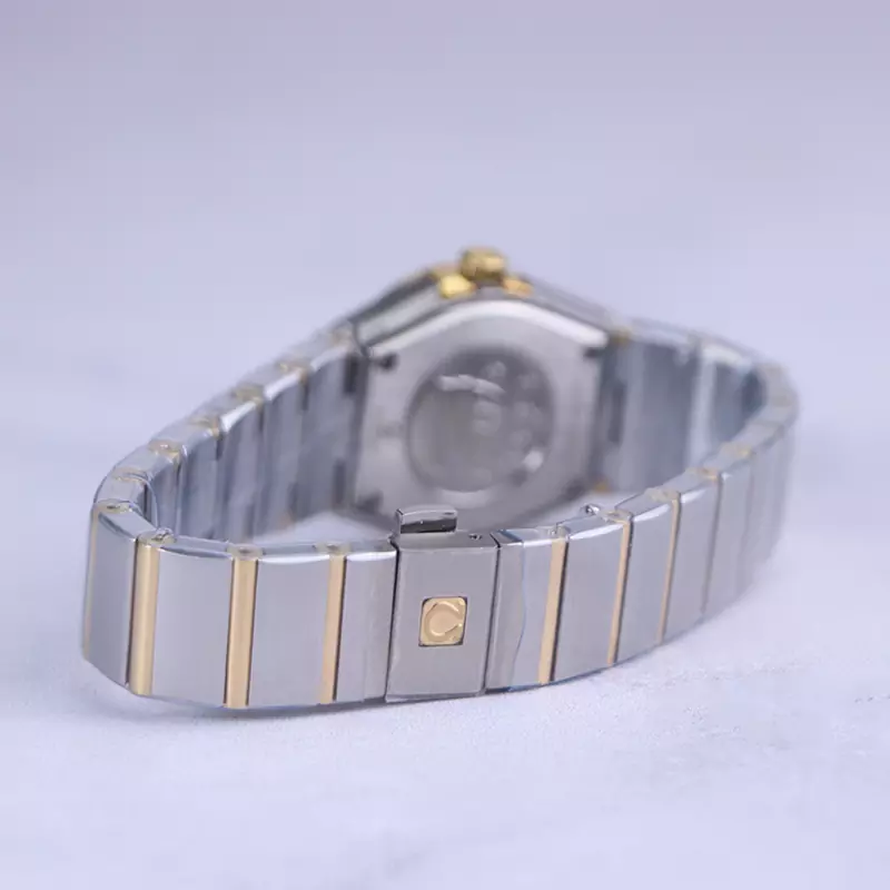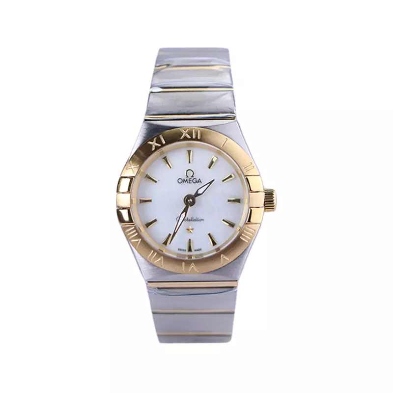 ساعت امگا زنانه فلزی ظاهری کلاسیک و جذاب دارد. این ساعت عقربه‌ای زنانه استیل نقره‌ای طلایی، رنگ ثابت و ضدحساسیت است. اصلی ترین چیزی که در ساعت اومگا کانسلکشن توجه ما را به خود جلب می‌کند، همنشینی رنگ بند و قاب طلایی ساعت است. اندکس‌های این ساعت به صورت خطی و طلایی هستند. این صفحه با حاشیه نوشته‌های اعداد به صورت لاتین و عقربه‌های شبنما بسیار زیبا شده است. اگر به درون صفحه سفید رنگ ساعت نگاه کنید، نام برند امگا زیر ساعت 12 دیده می‌شود. در کنار صفحه یک پیچ کوک برای تنظیم زمان وجود دارد. بند ساعت، فلزی و از نوع استیل مرغوب است که باعث تعرق و خارش نمی‌شود. طرح این بند از یک بافت یک‌دست تشکیل شده که نقره‌ای بوده و قسمت میانی آن طلایی رنگ است. قفل آن از مدل پروانه‌ای دکمه‌دار است که از دسته قفل‌های محکم و مطمئن است.