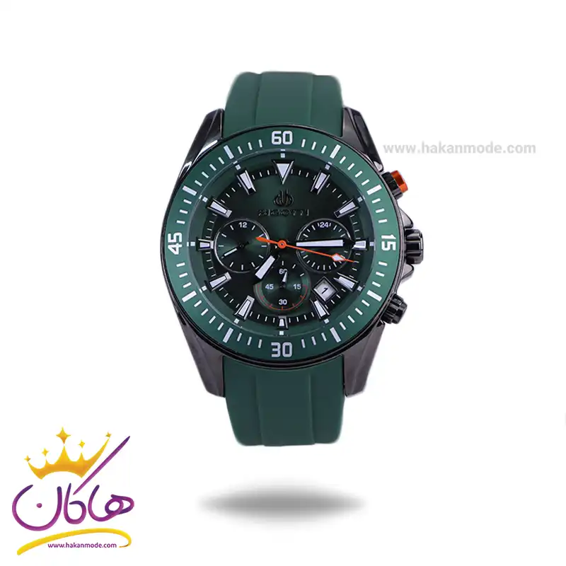 ویژگی ساعت عقربه ای بیگوتی مردانه بند رابر سبز کرنوگراف اصل
