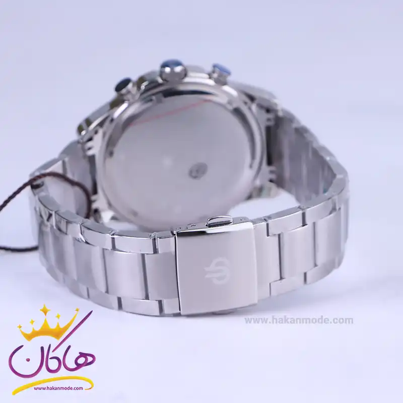 ساعت عقربه ای بیگوتی مردانه فلزی نقره ای سه موتوره BG.1.10578/1 ظاهری مدرن و جذاب دارد. این ساعت استیل نقره ای، رنگ ثابت و ضدحساسیت است. اگر به داخل ساعت نگاه کنید، صفحهی این ساعت به رنگ سفید است و سه صفحه دایرهای کوچک میبینید که هر کدام از آنها نشان دهندهی پارامتری خاص هستند. یک صفحه که در سمت چپ قرار دارد ساعت را به صورت 24 ساعته نشان میدهد. اگر از افرادی هستید که امور خود را بر اساس تایم 24 ساعته تنظیم میکنید این صفحه کوچک به کار شما میآید. یک صفحه که وسط قرار دارد نشاندهندهی روزهای ماه است. صفحهی بالایی نیز روزهای هفته را نشان میدهد. بند ساعت فلزی با بافتهای ریز و درشت و از نوع مرغوب است که باعث تعرق و خارش نمیشود. اندکسهای این ساعت به صورت خطی نقره ای و عقربههای آن شبنما طراحی شدهاند. لوگوی برند بیگوتی را کنار عدد 3 میبینید. قفل این ساعت از نوع دوتکه دکمهدار است و ساعت به راحتی از دست نمیافتد. در کنار صفحه یک پیچ کوک و دو دکمه برای تنظیم زمان وجود دارد.