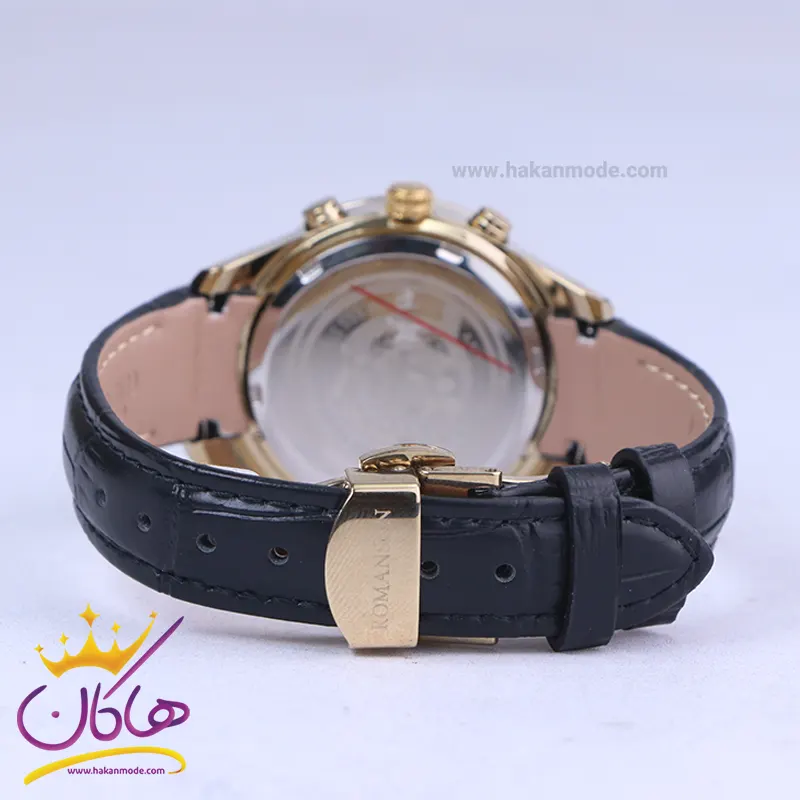 ساعت عقربه ای رومانسون مردانه چرم مشکی قاب طلایی G 2101/3