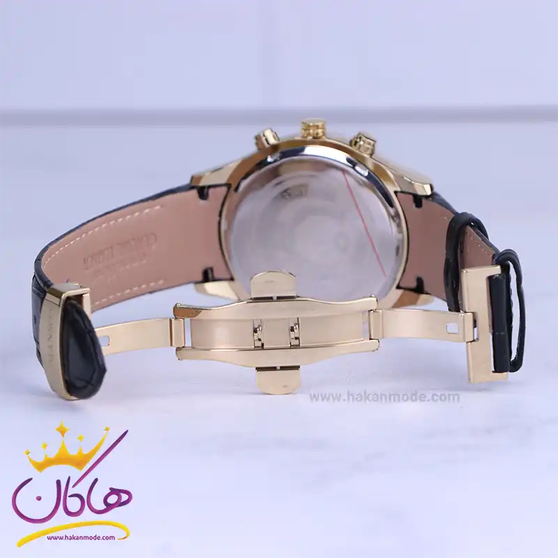 ساعت رومانسون عقربه ای مردانه بند چرم مشکی قاب طلایی G2098/1
