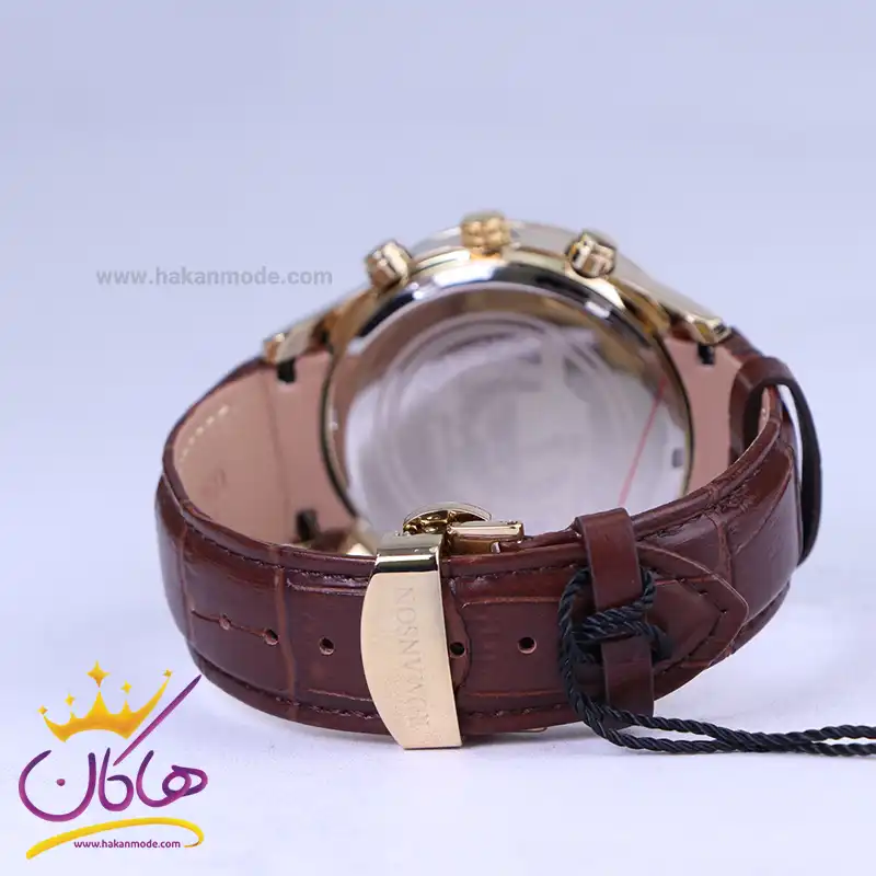 ساعت رومانسون عقربه ای مردانه بند چرم قهوه ای قاب طلایی G2101/1
