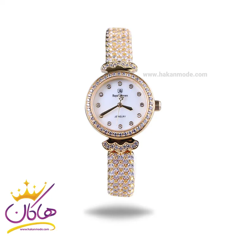 ساعت عقربه ای رویال کرون زنانه استیل طلایی تمام نگین 3002/2