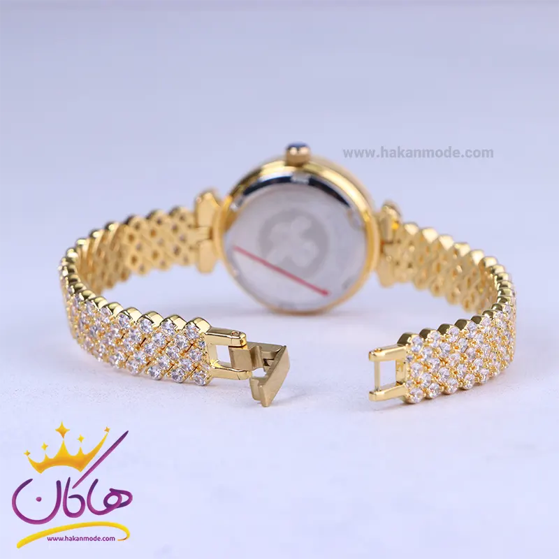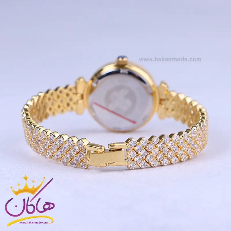 قفل ساعت مچی عقربه ای رویال کرون زنانه استیل طلایی تمام نگین 3002/2