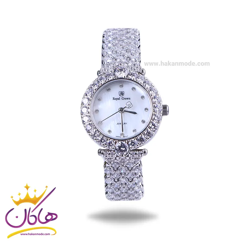 ساعت عقربه ای رویال کرون زنانه استیل نقره ای تمام نگین 3001/9