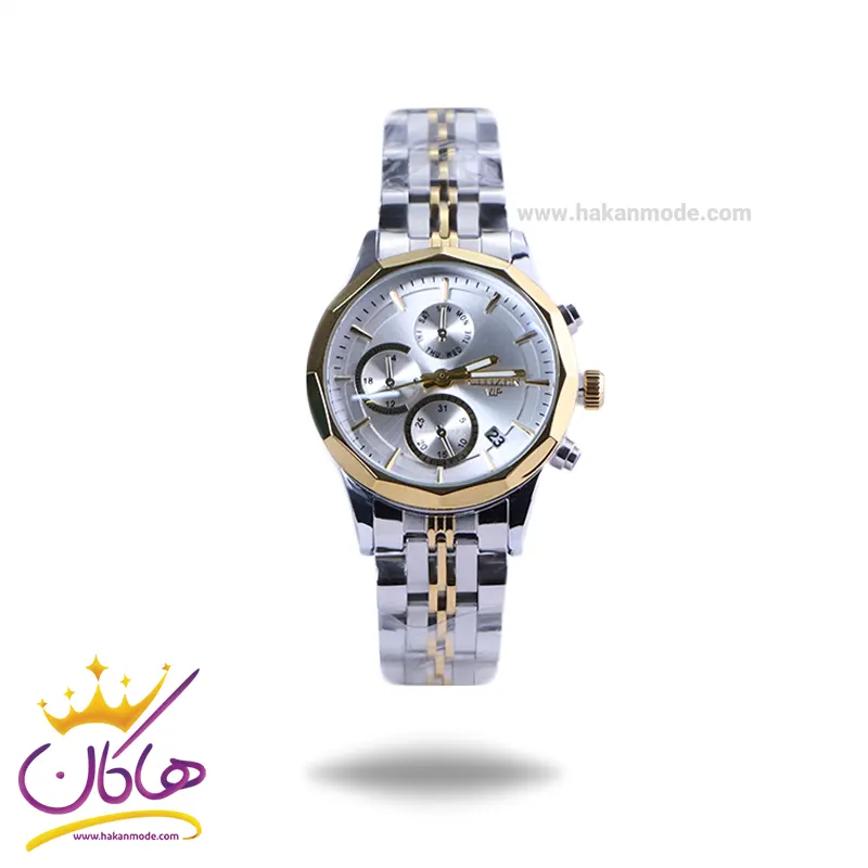 ساعت مچی سیتیزن زنانه فلزی ظاهری مدرن و جذاب دارد. این ساعت استیل نقرهای طلایی، رنگ ثابت و ضدحساسیت است. اصلی ترین چیزی که در ساعت سیتیزن توجه ما را به خود جلب میکند قاب چندضلعی و طلایی رنگ ساعت است. در واقع این ساعت، طرح سه موتوره است و صفحات کوچکی که میبینید، نمایشی هستند. عقربهها، شبنما و اندکسها خطی و طلایی هستند. اگر به درون صفحه سفید رنگ ساعت نگاه کنید، نام برند Citizen کنار ساعت 3 دیده میشود. یک مربع کوچک بین اعداد 4 و 5 قرار دارد که همان تقویم ساعت است. در کنار صفحه یک پیچ کوک برای تنظیم زمان وجود دارد. بند ساعت، فلزی و از نوع استیل مرغوب است که باعث تعرق و خارش نمیشود. این بند از بافت ریز و درشت تشکیل شده که قسمت میانی طلایی رنگ و کنارههای آن نقرهای رنگ است. قفل ساعت از مدل پروانهای دکمهدار است که از دسته قفلهای محکم و مطمئن است.