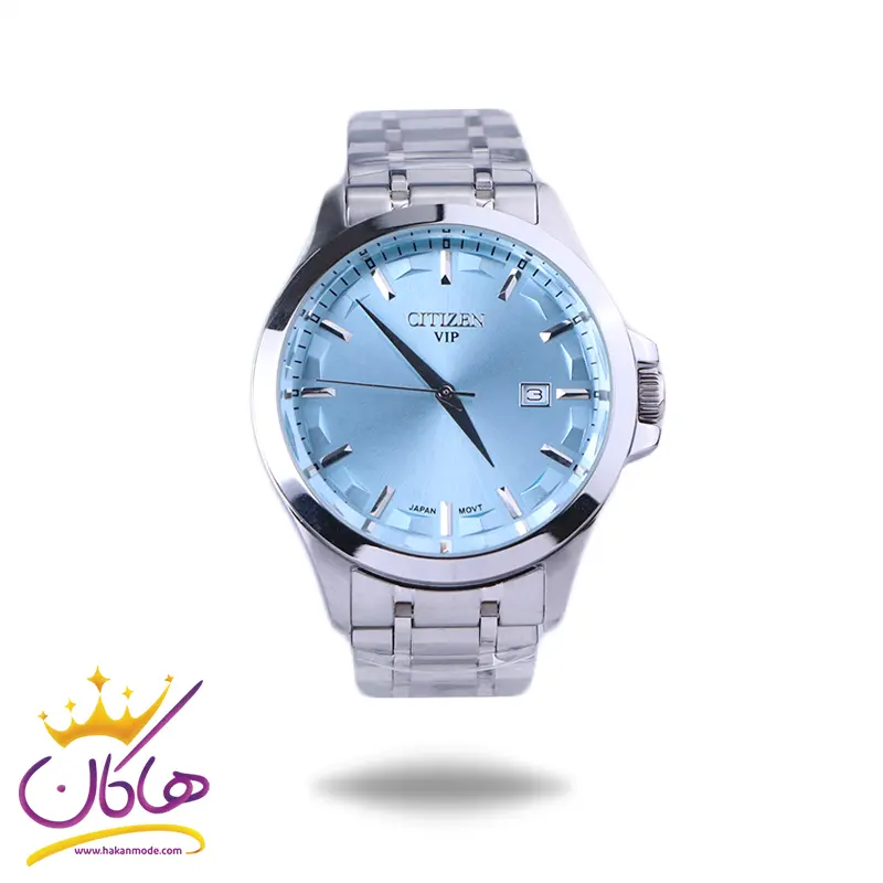 ساعت مچی سیتیزن مردانه فلزی ظاهری کلاسیک و جذاب دارد. این ساعت استیل نقرهای، رنگ ثابت و ضدحساسیت است. اصلیترین چیزی که در ساعت مردانه سیتیزن توجه ما را به خود جلب میکند، صفحهی آبی تیفانی رنگ ساعت است که بر شیکی آن افزوده است. قاب ساعت به شکل گرد و نقرهای است. عقربهها نقرهای و اندکسهای ساعت خطی هستند. در کنار موقعیت ساعت 3 یک مربع کوچک وجود دارد که نشان دهندهی تقویم ساعت است. اگر به درون صفحه نگاه کنید، نام برند سیتیزن زیر ساعت 12 دیده میشود. در کنار صفحه یک پیچ کوک برای تنظیم زمان وجود دارد. بند ساعت، فلزی و از نوع استیل مرغوب است که باعث تعرق و خارش نمیشود. طرح این بند از یک بافت ریز و درشت تشکیل شده که نقرهای رنگ است و قفل آن از مدل پروانهای دکمهدار است که از دسته قفلهای محکم و مطمئن است.