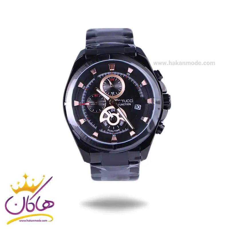 ساعت عقربه ای فروچی مردانه فلزی مشکی FC03273/02 ظاهری مدرن و جذاب دارد. این ساعت استیل مشکی، رنگ ثابت و ضدحساسیت است. اگر به داخل ساعت نگاه کنید، صفحهی این ساعت به رنگ مشکی است و سه صفحه دایرهای کوچک میبینید که هر کدام از آنها نشان دهندهی پارامتری خاص هستند. یک صفحه که در سمت چپ قرار دارد روزهای هفته را نشان میدهد. صفحهی بالا ساعت را به صورت 24 ساعته نشان میدهد. اگر از افرادی هستید که امور خود را بر اساس تایم 24 ساعته تنظیم میکنید این صفحه کوچک به کار شما میآید. یک صفحه که پایین قرار دارد برای نشان دادن زمان دوم است. یعنی این ساعت به طور هم زمان میتواند دو زمان مختلف مربوط به دو منطقه متفاوت را نمایش دهد. به صورتی که میتوانید با داشتن این ساعت زمان دو کشور متفاوت را در یک صفحه داشته باشید. یک مربع کوچک بین عدد ۴ و 3 قرار دارد که همان تقویم ساعت است. بند ساعت فلزی با بافتهای ریز و درشت و از نوع مرغوب است که باعث تعرق و خارش نمیشود. اندکسهای این ساعت به صورت خطی رزگلد و عقربههای آن شبنما طراحی شدهاند. لوگوی برند فروچی را کنار عدد 3 میبینید. قفل این ساعت از نوع دوتکه دکمهدار است و ساعت به راحتی از دست نمیافتد. در کنار صفحه یک پیچ کوک و دو دکمه برای تنظیم زمان وجود دارد.