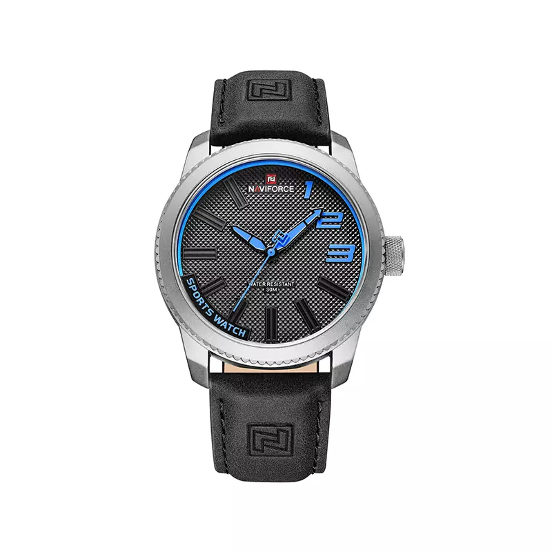 خرید ساعت عقربه ای نیوی فورس مردانه بند چرم مشکی 9202/8