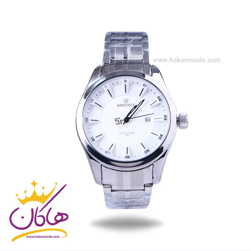 خرید ساعت عقربه ای نیوی فورس مردانه فلزی صفحه سفید 8032/1