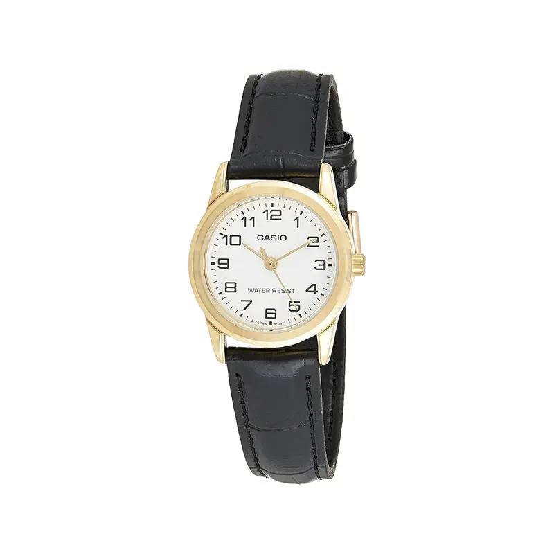 ساعت عقربه ای کاسیو زنانه بند چرم مشکی LTP-V001GL-7BUDF