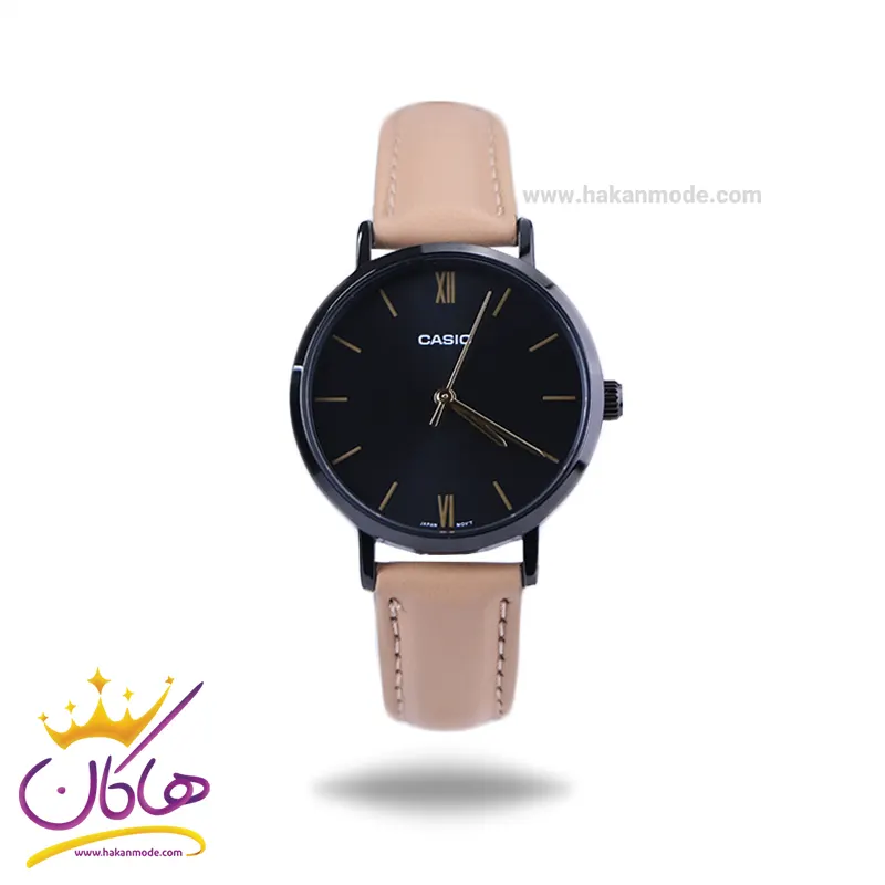 ساعت عقربه ای CASIO زنانه بند چرم کرمی صفحه مشکی LTP-VT02BL-1AUDF