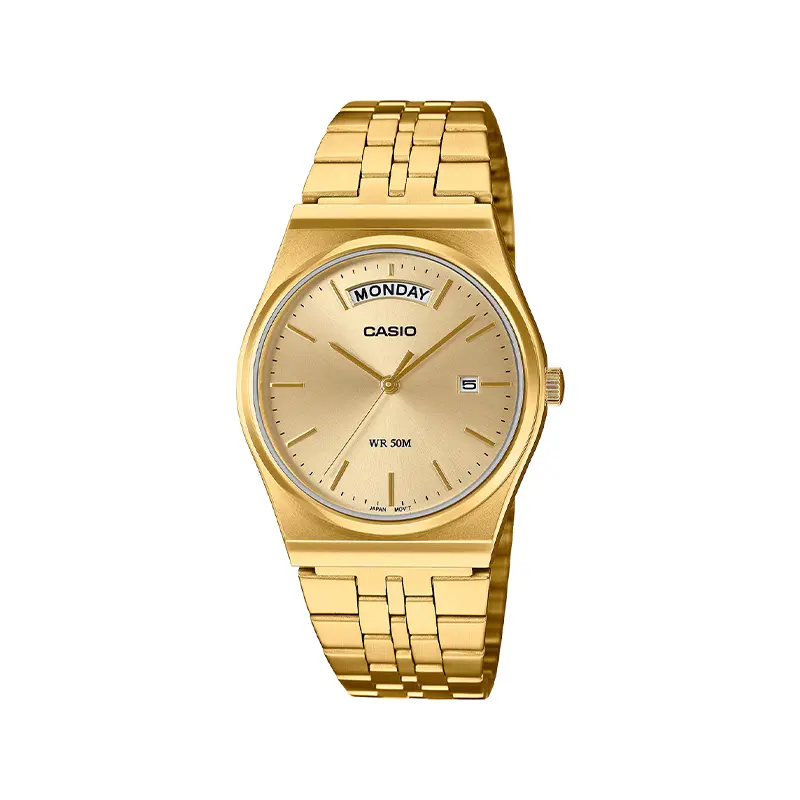 ویژگی ساعت عقربه ای کاسیو مردانه طلایی MTP-B146G-9AVDF
