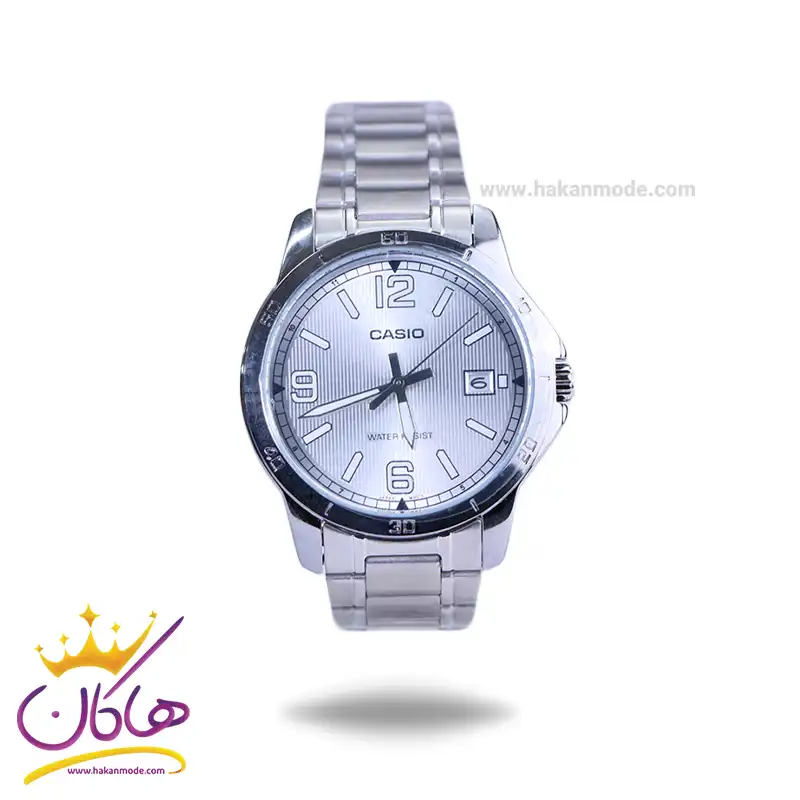 ساعت مچی کاسیو مردانه فلزی ظاهری کلاسیک و جذاب دارد. این ساعت استیل نقره ای، رنگ ثابت و ضدحساسیت است. اصلی‌ترین چیزی که در ساعت کاسیو مردانه توجه ما را به خود جلب می‌کند همخوانی رنگ بند با قاب نقره ای ساعت است. صفحه‌ی این ساعت سفید و راه راه بوده و اندکس‌‌های آن به صورت ترکیبی، عددی و خطی طراحی شده‌اند. یک مربع کوچک در کنار ساعت 3 وجود دارد که همان تقویم ساعت است. نام برند casio زیر ساعت 12 دیده می‌شود. در کنار صفحه یک پیچ کوک برای تنظیم زمان وجود دارد. بند ساعت، از بافت یک‌‎دستی تشکیل شده است. همچنین جنس بند فلزی و از نوع استیل مرغوب است که باعث تعرق و خارش نمی‌شود. قفل آن از مدل دو تکه است که از دسته قفل‌های محکم و مطمئن است.