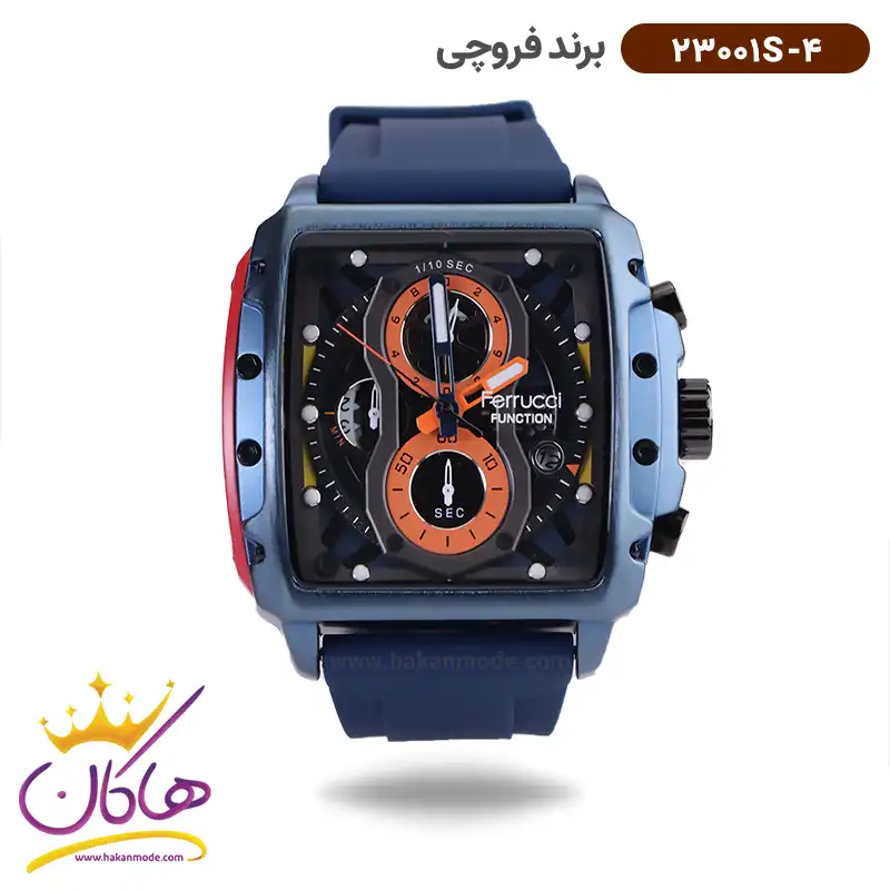 ویژگی ساعت فروچی مردانه بند رابر سورمه ای کرنوگراف قاب مربع 23001s/4