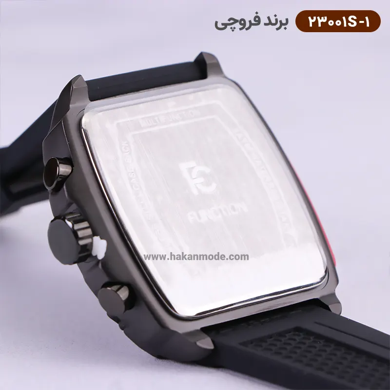 خرید ساعت فروچی مردانه بند رابر مشکی قاب مربع کرنوگراف 23001s/1