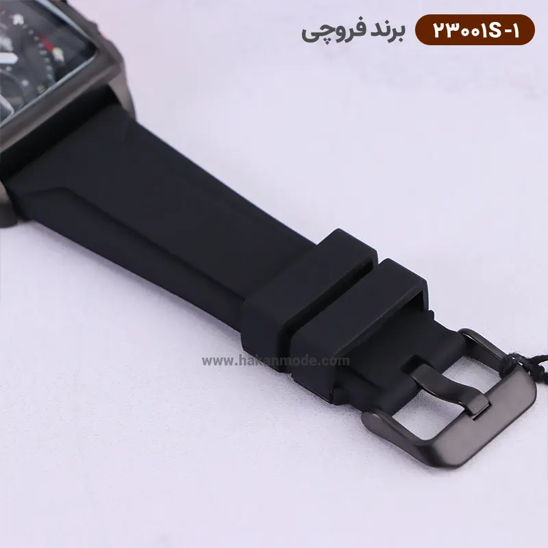 قفل ساعت فروچی مردانه بند رابر مشکی قاب مربع کرنوگراف 23001s/1