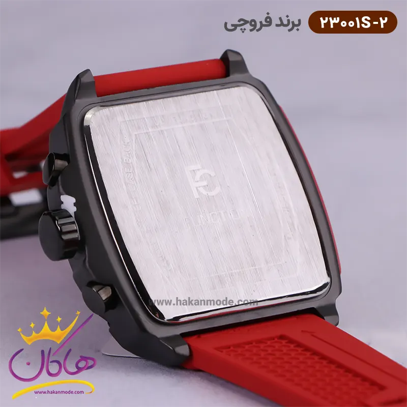 خرید ساعت فروچی مردانه بند رابر قرمز قاب مربع کرنوگراف 23001s/2