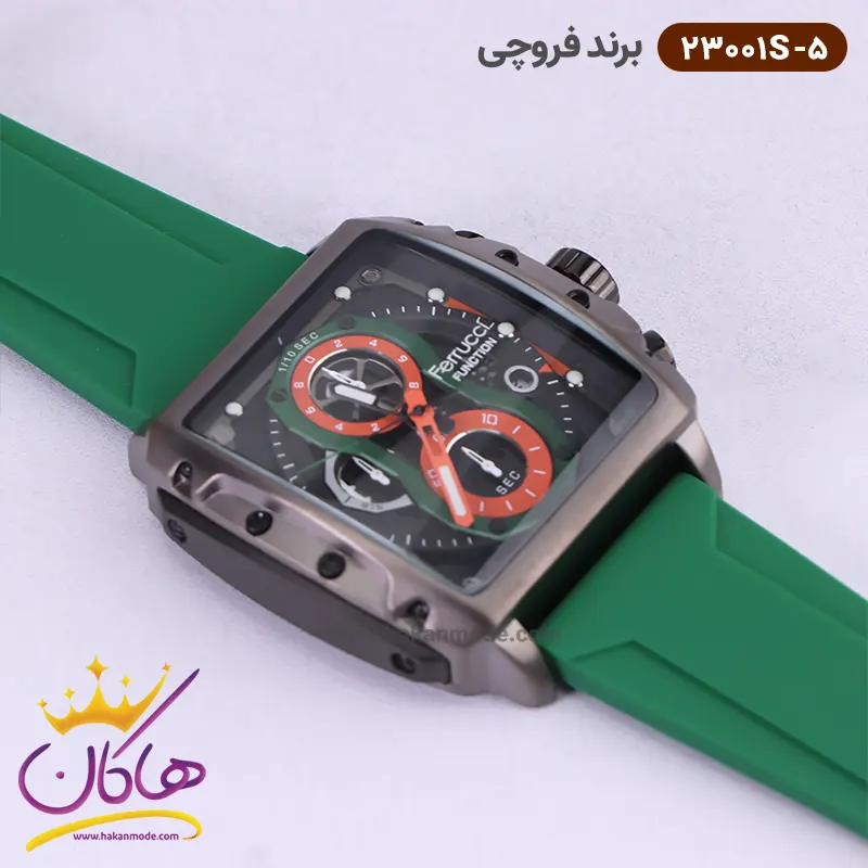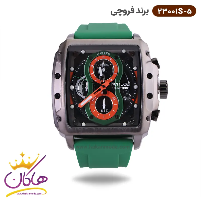 خرید ساعت فروچی مردانه بند رابر سبز کرنوگراف صفحه مربع 23001s/5