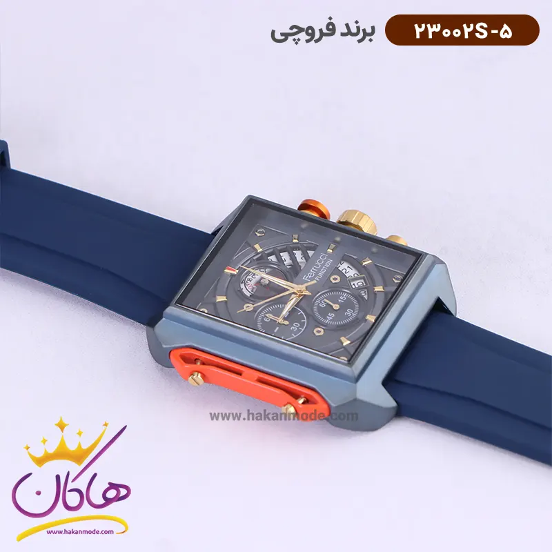خرید ساعت فروچی مردانه بند رابر سورمه ای قاب مربع کرنوگراف 23002s/5