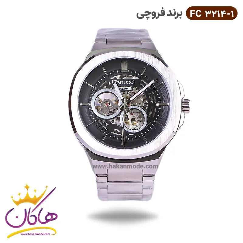 خرید ساعت فروچی مردانه فلزی اتوماتیک نقره ای صفحه اسکلتون 03214/1